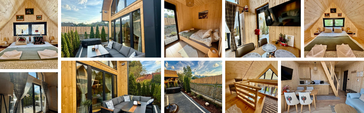 Domek to w pełni niezależny dom wakacyjny z dwiema sypialniami, salonem oraz dobrze wyposażoną kuchnią, przystosowany wygodnie nawet dla 4–6 osób. Wnętrze łączy nowoczesny standard z ciepłymi, górskimi akcentami – jest klimatyzacja, telewizor ze streamingiem oraz wygodna część wypoczynkowa do wspólnego spędzania wieczorów.